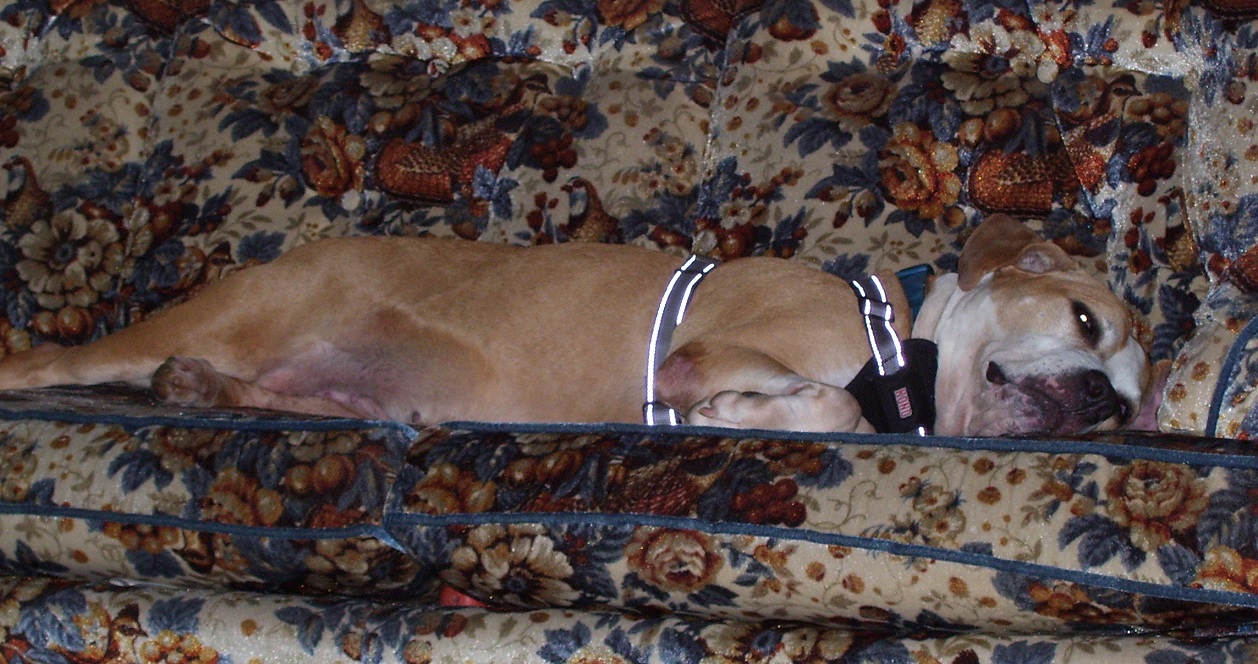 We had to put our dog of 13-1/2 years down at the end of June due to kidney disease. We had gotten her as a rescue at 7 months old and even after 13-1/2 years, she still didn't trust people. Since we have had a dog for the last 26 years straight, we took a break for 3 months. We figured we would look for another dog when the weather cooled down a little. We have a local no kill shelter so I wanted to get a dog from them. Initially I was thinking another younger dog (we don't really need a puppy, there are no kids in the house). But after looking at the dogs they have, a couple of the senior dogs looked like they needed a stable home and probably wouldn't have an easy time getting adopted. So Friday morning we ended up adopting Layla, a 9 year old American Staffordshire Terrier (very similar to the pitbull). We have a fenced in back yard so the dog can roam around freely which she wasn't used to. She's really sweet and is adjusting to a new home pretty quickly.