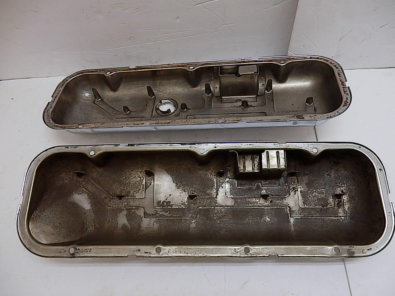These are all original flash chrome valve covers with dripper's, I am not selling for less than the Crane reproductions. These are getting harder to find in nice condition, I have over 30 valve cover's in various condition, & I try to match them according to condition. I do buy single valve covers to add to my collection. I added a pair of 1969 Chevelle & Corvette.