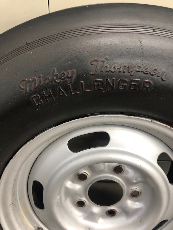 Outstanding pair of Day 2 M/T Challenger slicks, 8.25/8.55x14 on YW rallys. No DOT. Wheels have been sprayed on front side. See pix for details. $1,200.