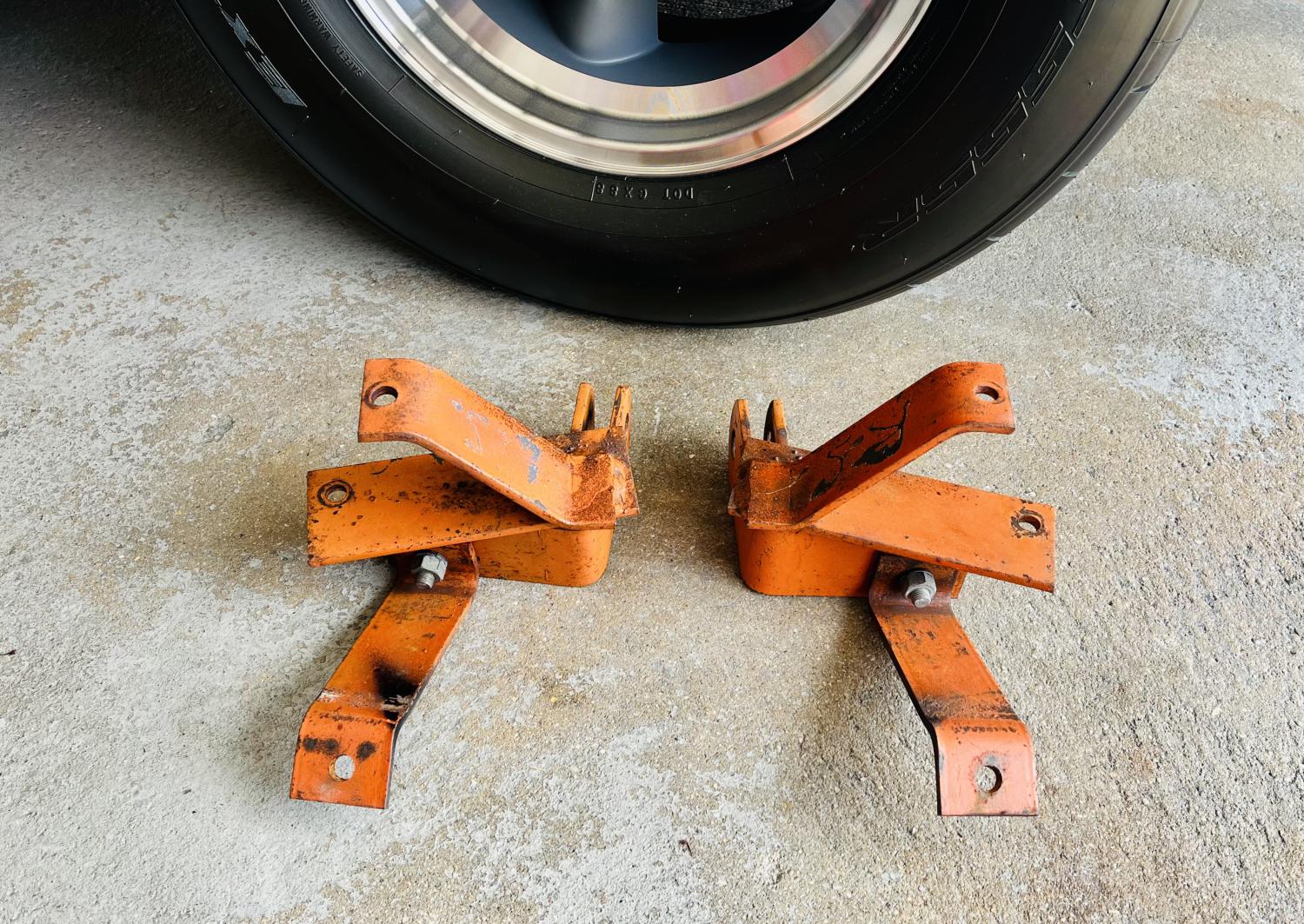 NMW TB63 tow tabs for a 70 Chevelle. Very hard to find for the 70 model. Original orange paint. Would look great on a survivor car. $300
