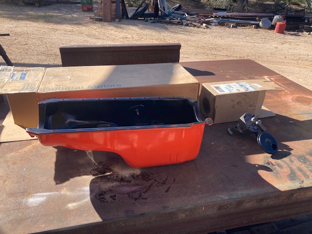 Selling a BBC oil pan part number 14091356. It was brand new in the box. I painted it orange. I installed it on a motor. I put oil in it but never fired the motor. I went another direction. It will be shipped in the GM box as shown. The price is 350 PPFF shipped lower 48 USA. Larry 5203492337