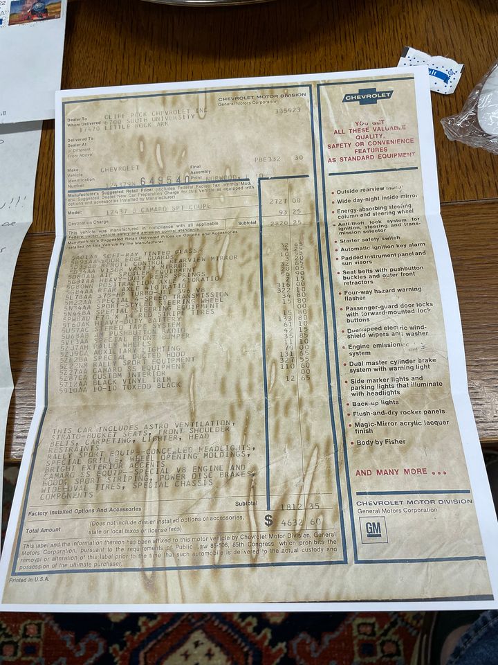 They almost ran out of room to list options, lol. In contrast, seen some orig build sheets on 69-70 L78 Nova's that were loaded up and were a good bit north of $4k on the sticker and Nova's probably had half the options available that Camaro's had. The HiPo options were pricey..