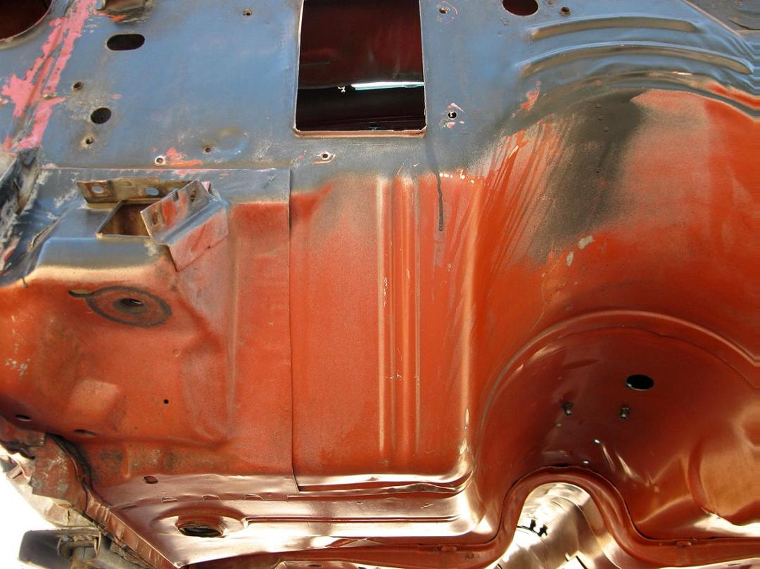 In the photos of Jack's car you can make out the contrast from the red oxide and the orange overspray on the floors. That's Priceless.