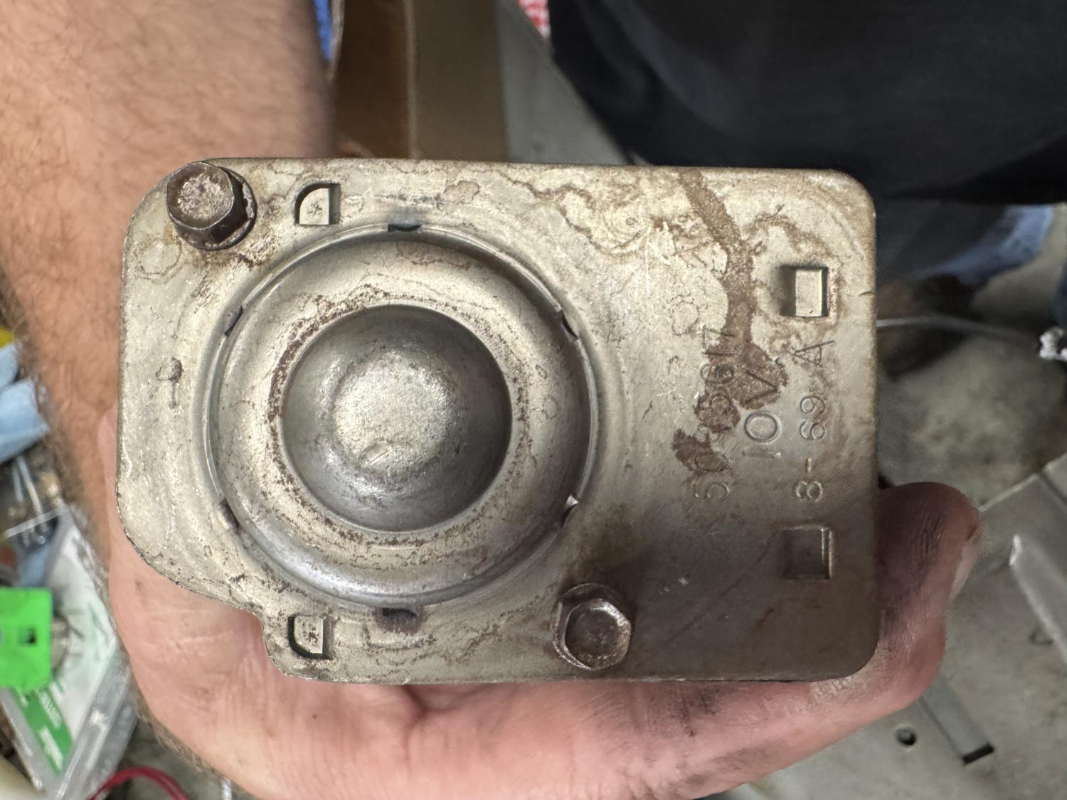 It almost looks like the Corvette headlight motor. You can call Bill Naeger at 618 656-5398 or 618 803-8554 [email protected]. CGR Restoration rebuilds the headlight motors too. Their contact info is 864 642-9308 www.cgrrestorations.com.