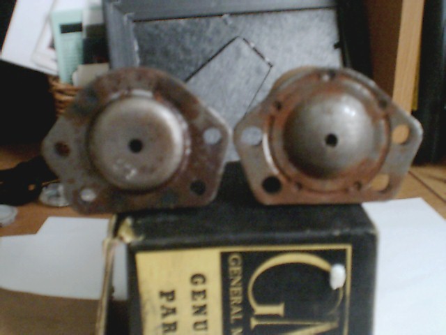 In the attached picture the ball joint on the left is an nos upper ball joint for my '70 ls6,it perfectly matches the original ones that I just removed from my car.The one on the right is also an nos upper ball joint,part# 3848048 grp 6.164,according to my GM dealer this is supposed to be the same ball joint as my original ones,however as you can see it is not.The main issue is the rivet holes on the one on the right are bigger than my nos unit and I don't think that my 1/4" rivets would hold them tightly.There are several of these nos units on e-bay,they all give the same part # and say that they are for a '70 Chevelle. Has anyone seen this before, or did GM use different size rivets??
