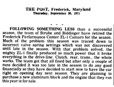 Jeff M. ZL1 #49 (Dale, Waukesha WI) Super Stock restoration by SCW; 9561AA (Walters, Hebron OH) Super Stock motor by the Grump |