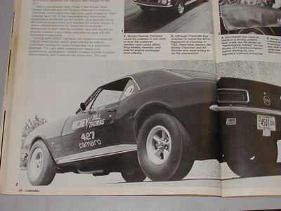 I thought I remembered seeing an ad or a magazine article or ad about Nickey/Harrell doing the big block swap in Oct of 66. That would hint that he might have been working out the details even earlier. Here's the article, pretty funny that they started messing up spelling Camero just as the car first came out!