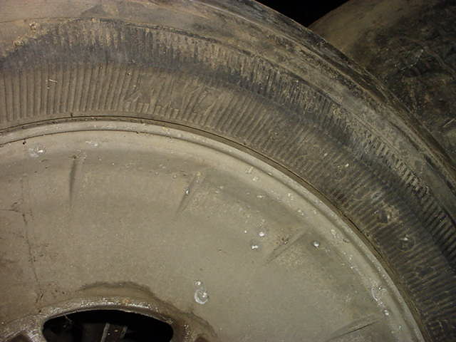 While Chad and I were going through someones parts for sale today we stumbled upon these. Any idea what the he!! they are???? These are Firestone tires with 16" Firestone wheels. The tires are N50-16. The markings on the side that appear to be weather checking are actually scribbed lines in the sidewall of the tires. The backs of the wheels also say Firestone 16x 3 1/2. Anyone???? I am thinking prototype wheels and tires but for what. Not even the Firestone rep seemed to know. TIA