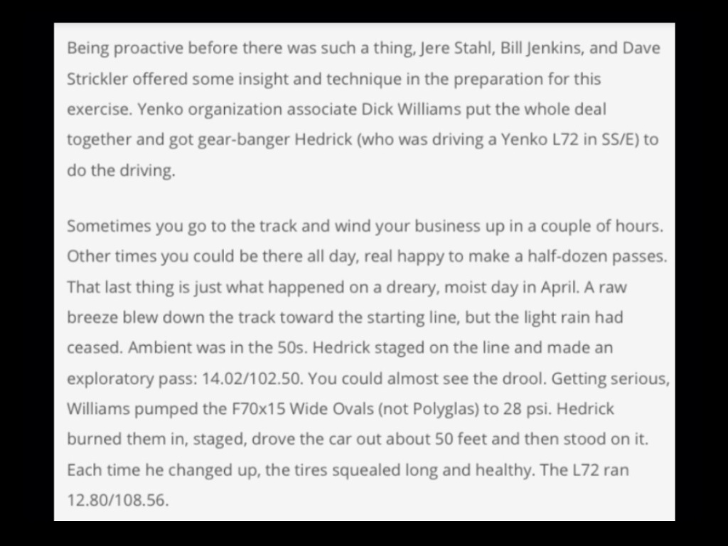 I'm going to copy that article to Mike and see if he has the L88 in his Chevelle. Wild.