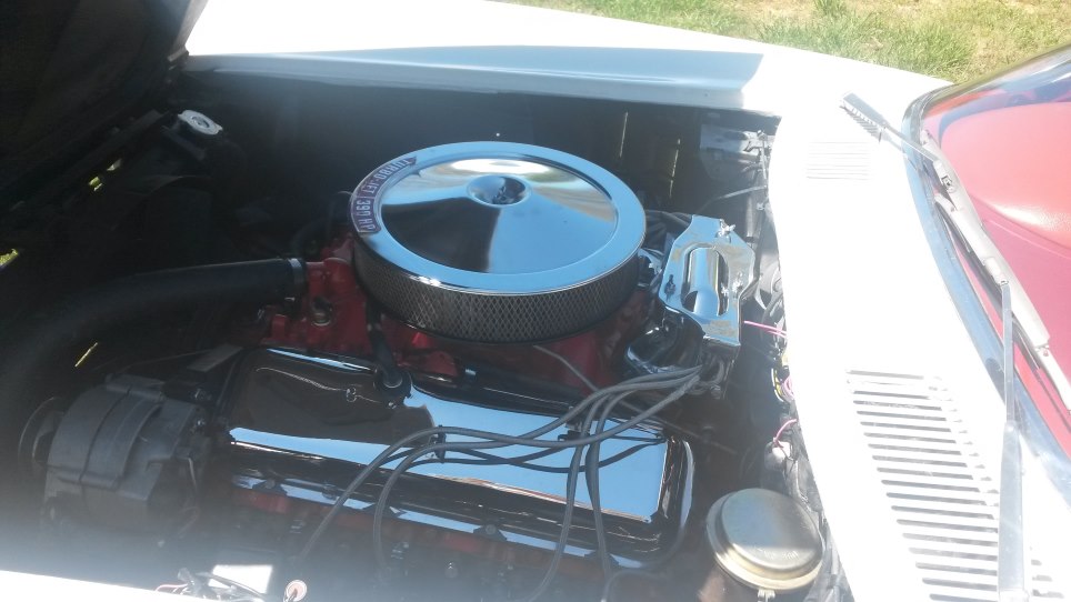 A little follow up on the ’66 Vette Drew took to the prom. Sort of a survivor, pretty much all original, numbers matching drive train, most of the original parts intact. Three owner car, with the first and third owners father and son. The original 427/390 engine was in desperate need of some attention, as had quite a bit of blow by. When our engine builder dissembled the engine, from heads on down, untouched gaskets, etc with all the original parts, complete with three broken piston skirts. Fortunately did not hurt the cylinder walls. While the engine was being freshened up, we power washed everything to try and remove 50+ years of grime, and touched up a few spots/scratches on the body.