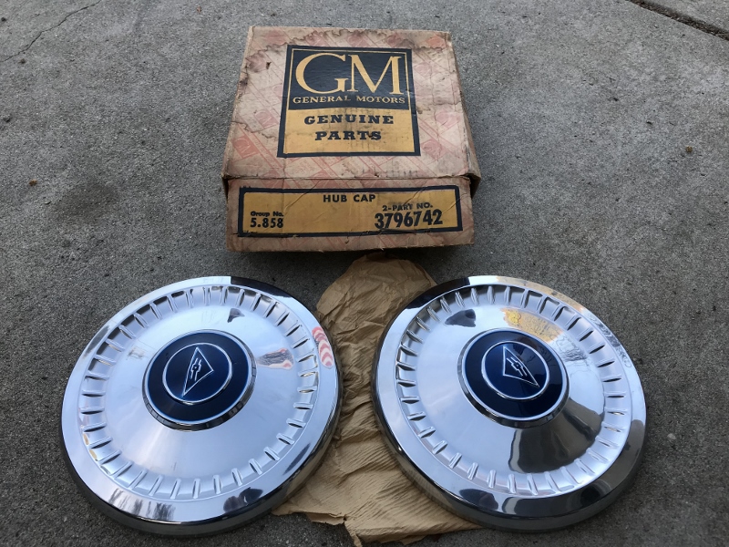 Here they are, 2 NOS Corvair hubcaps as shown. $75 shipped to the 48. Thanks, Anthony Last edited by AnthonyS; 04-15-2018 at 06:33 AM. Reason: lower price |