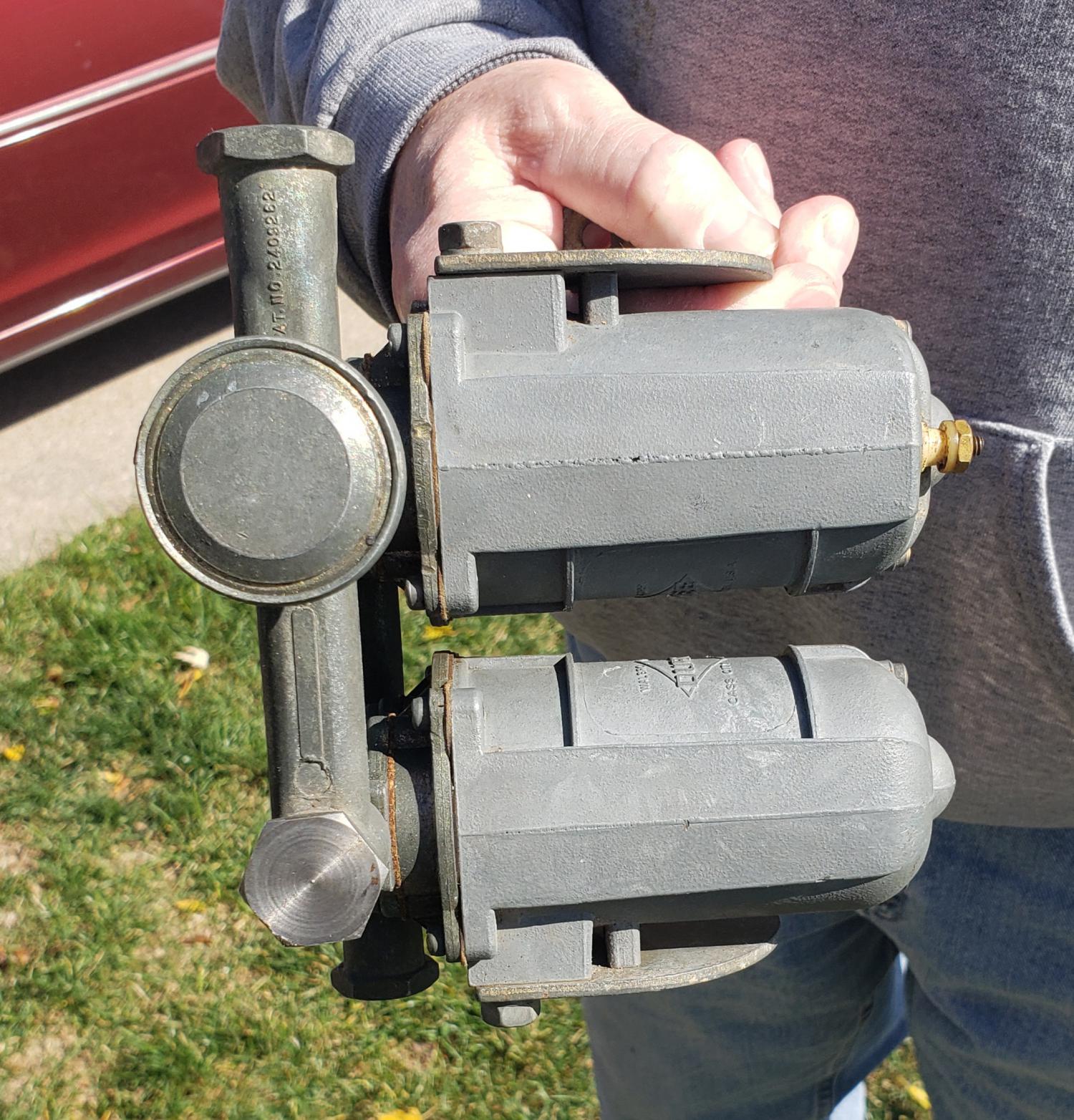 Hello everyone. I'm new around here and I don't own a supercar, but I do have a knack for finding rare parts. One of those rare parts is a Dupree dual electric fuel pump assembly complete with mounting brackets and the elusive manifold. My research shows Motion producing converted cars through '74 using a few different brands for these Super Pumps. Both of mine are dated 3-72 and the used assembly is flawless. I can provide detailed pics on request but I won't be back to the shop until Thursday 10/13.