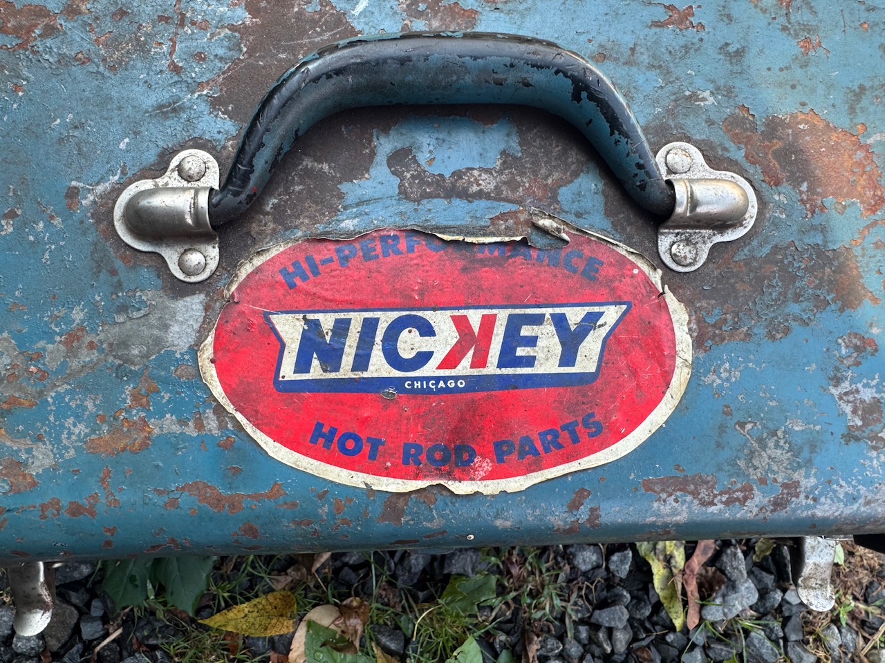 The one I mainly use now is an old little Craftsman box I keep in whatever car I’m driving around. It has a bunch of little old stickers inside, and a Nickey sticker on the top. I’ve been curious if anyone could tell me how old this sticker and toolbox might be?
