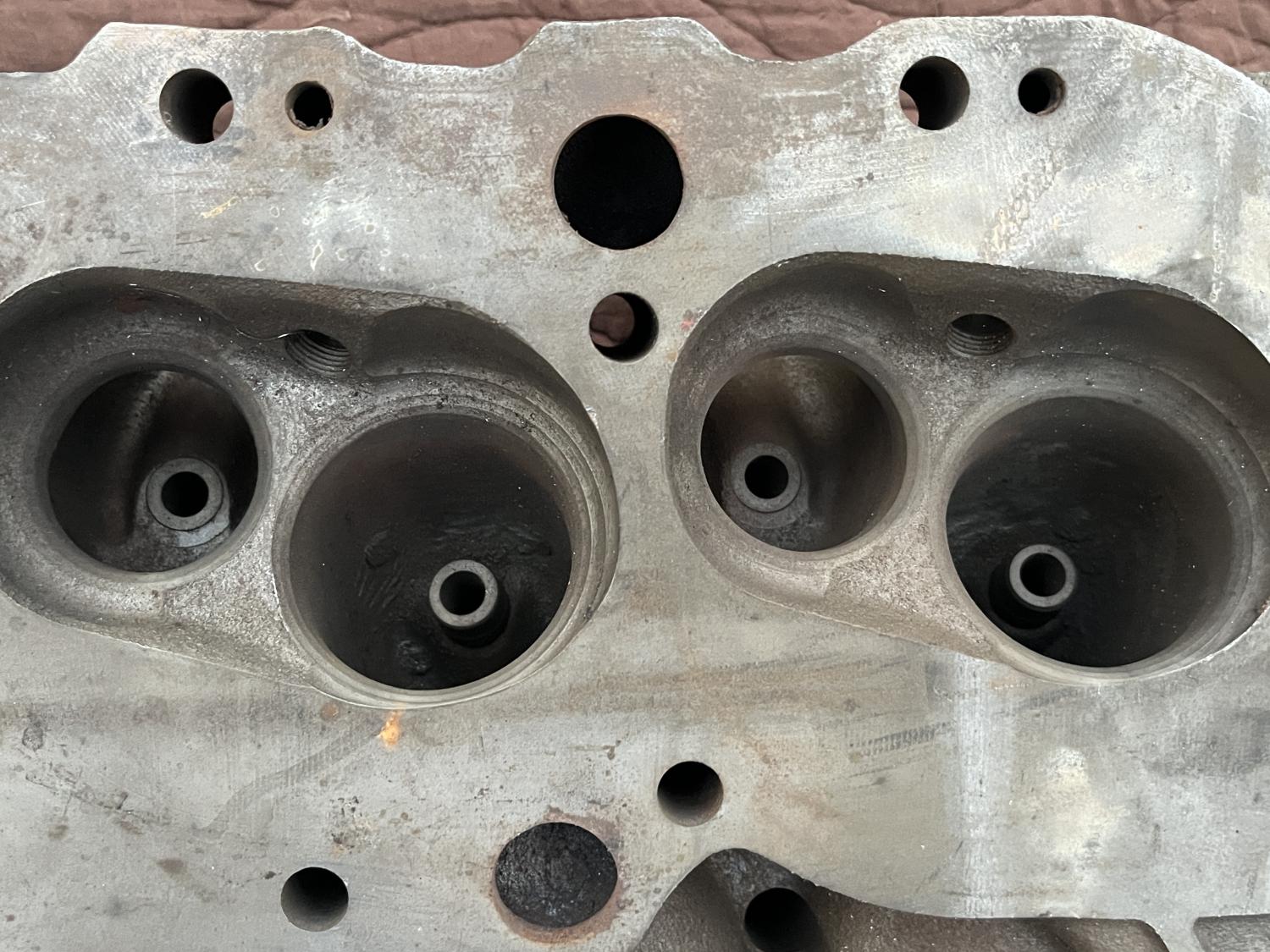 The first pictured is dated C-18-8 = March 18, 1968 and is still loaded with springs and valves as shown. No porting or polishing evident to me, and they do not look shaved either. The second is nicely dated on A-29-9 = January 29, 1969 and is bare. Again, no porting or polishing evident to me, and they do not look shaved either. Slight edge dings on one combustion chamber, see photos. But, both are what they are; cores that were removed decades ago and have been languishing in an old garage since. Priced EACH plus any boxing and shipping if needed. Cheers all, Anthony Last edited by AnthonyS; 10-06-2025 at 06:14 PM. |