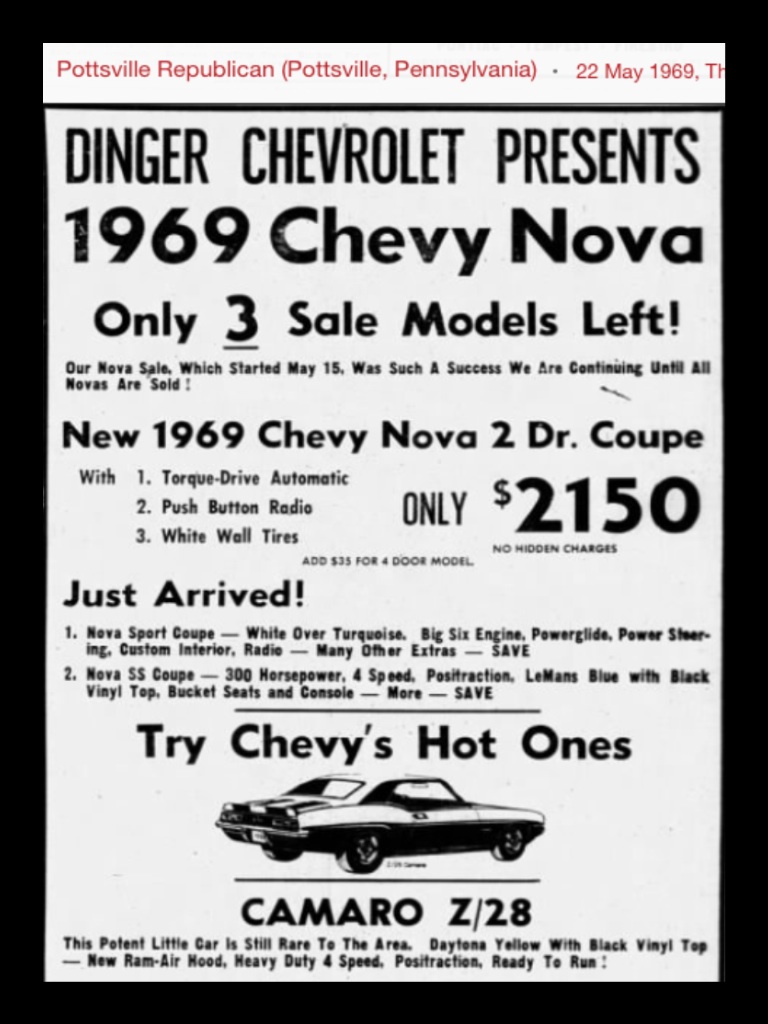 We just got the NCRS report back on a friends '69 Z28, and it's from Dinger! I know they are out of business now, but were a primary dealer back in the day. How do you guys search the old newspapers?