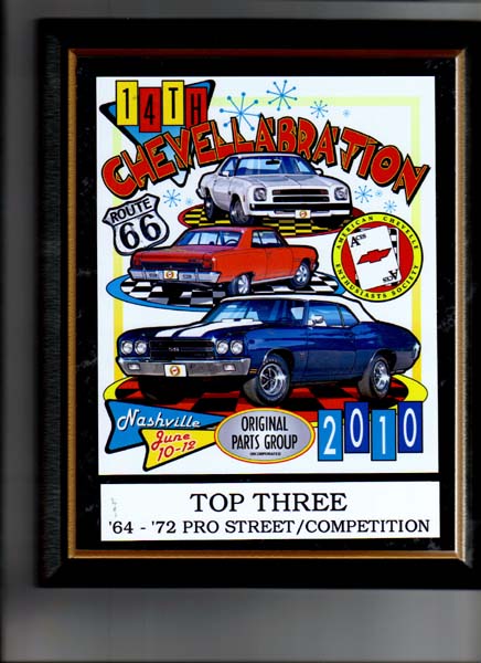 Got a surprise in the mail today from Chuck. Seems Red Alert was given a Top Three award in the '64='72 Pro Street/Competition class. I am both honored, and surprised, as there were some really outstanding Pro-Street cars at CB10.