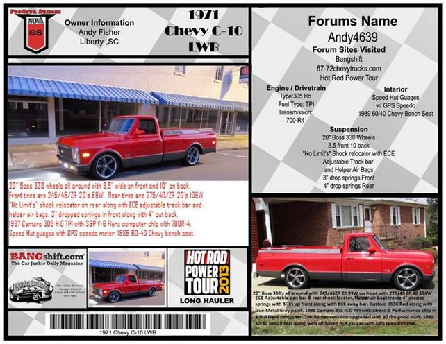 <span style="color: #FF0000"><span style="font-weight: bold">I have decided to take the 1971 Chevy truck on the pour tour in June.