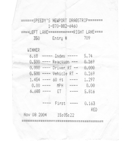 After winning the 2012 Super-Pro Championship at Newport, and in line to repeat as SP champ again this year, the last couple of weeks not doing so well. It was not the Deuce, just me. Yesterday I was able to settle down and get back on track. First round of elims I was recognized as having a "perfect pass", running a 6.68 on a 6.68 dial and a perfect .500 light. Next round opponent red light, the Deuce was getting quicker with with a 6.64. In the semis had a .505 light with a 6.65. In the finals I gave the race away with a red light as I entered a wrong number in my box. Not all bad though, as the Deuce laid down a nice 6.32 on a 6.32 dial. Amazing how a good day at the track makes going back to work not so bad.