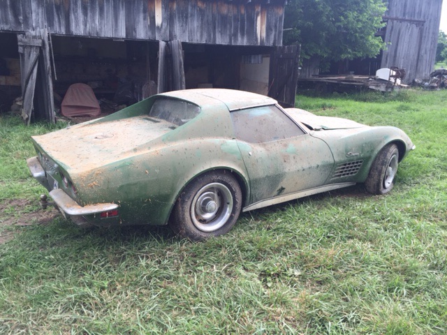 I thought I would share a few photos of this Vette that myself and a close friend had the opportunity to save and resurrect this weekend! It's a '72 350, automatic, original unrestored, all original paint (from what I can tell) one owner, all service history, original paperwork including POP, window sticker, and bill of sale, registration records, insurance receipts, original license plate, etc. car was sold new about 10 miles from where we found it, which is about 20 miles from me.