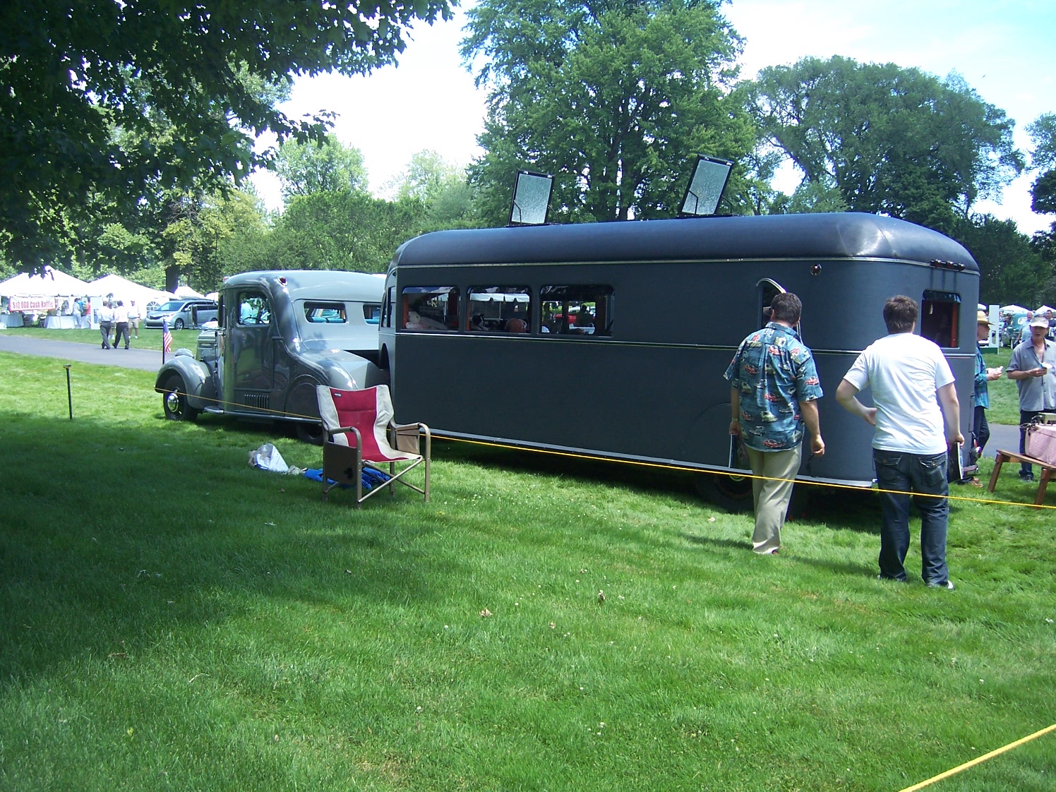 The "Eyes on Design" event has had a few displays on vintage camp trailers (aka the "Tin Can Tourists" and there are usually a couple specialty built rigs, including some from Pierce Arrow and Duesenberg. The rig pictured below is particularly notable because it uses aero frame technology and is covered with a "fabric" like naugahyde.It's not out of the question, since the 5th wheel configuration was invented by Detroit blacksmith August Fruehauf in the early 1900s, in true Michigander fashion, so that he could safely tow his boats "up north".