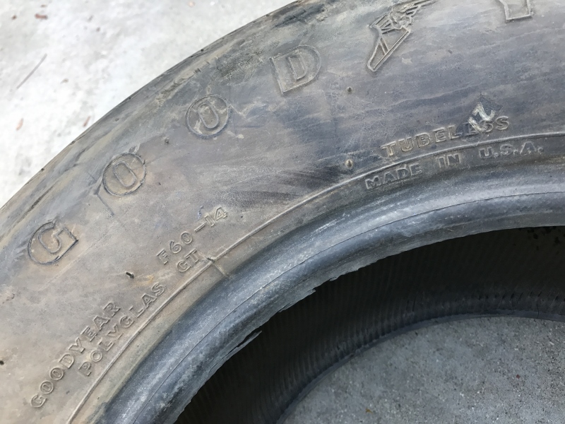 They are not repops, obviously original tires, see photos. The residue from the long lost Polyglas thin paper tag is still evident. They don't seem to have ever been mounted and are covered in barn-dust; I left them as-is, up to you to decide to clean or not. They certainly haven't been driven on; the nubs are still present. These should be for a show car - I'm not sure I would drive on them as there is some cracking as shown, but they present well for 40+ year old tires and are more than suitable for a show car / display, I would think. These are DOT tires and the date codes are: MBKW DL0187 - I believe to mean the 18th week of 1977 MBKW DL0167 - the 16th week of 1977; a matched pair! $250 plus actual shipping. Thanks sYc, Anthony Last edited by AnthonyS; 05-07-2018 at 01:38 AM. Reason: lower price |