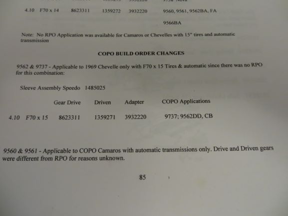 As many may know, our 69 Chevelle when found was missing the M21 so I took one off the shelf that I had (originally came out of a Pontiac) and rebuilt it using the correct Chevelle tailhousing. What I am not sure about is what speedometer drive and driven gear I need for the 4.10 with F70x15 tires. From talking with Eric at Crash Enterprises we came up with a small 8 tooth metal drive gear and a large yellow 24 tooth driven gear when used in conjunction with the .7333 speedo reducer. Can anyone else concur with this information before I put it all back together or offer other insight? I also could use part numbers if you have them.