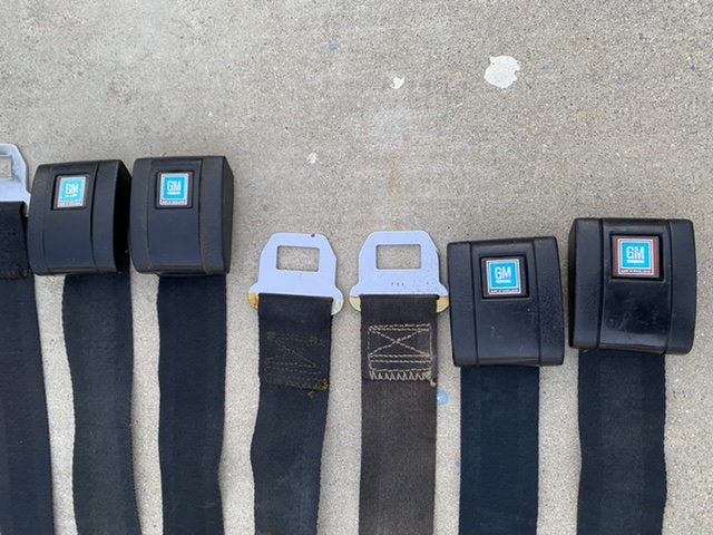 2 - 2904 Retractors 2 - 2904 Buckles 4 - 2950 Shoulder Harness 2 - 2910 Male 2 - 2910 Buckles Complete set of 1969 Camaro BLUE seat belts: SOLD I purchased these belts to complete the set on my car. I ended up only using the date code tags off of the blue set so that my set in my car have matching tags. I had the Mrs. sew on what was left of the tags on my set of belts to the blue set. I used what was needed from the black set to complete a nice set for my car. Additional pictures upon request. 150 for the black set. Shipping available at purchasers expense. Last edited by Gonzo1717; 04-03-2022 at 12:52 AM. Reason: Price change |