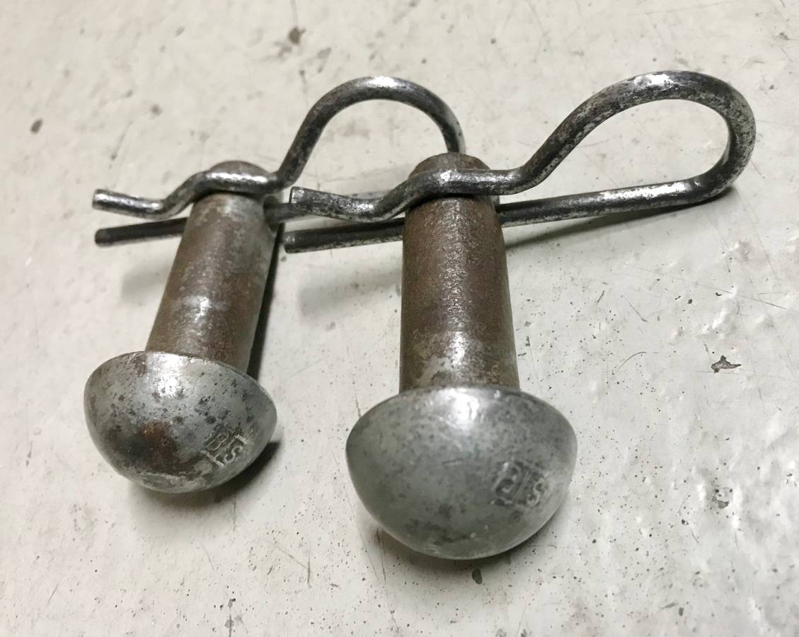 I have an original pair of Bethlehem Steel tow tab pins & clips for sale. I cleaned up the clips and they look very usable although there is some pitting present. Both the pins & clips could use an acid bath/replating to make them perfect or use them as-is on a survivor type car. (SOLD)