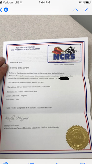 SOLD 1969 427 COPO Camaro Lemans Blue/Black, M22 4 speed, 15,800 original miles |