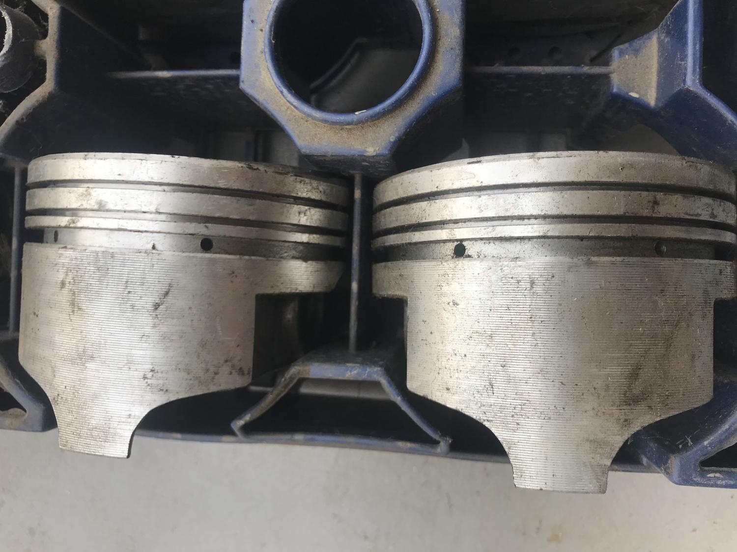I have a set of used BBC pistons L2399 0.060 over - no rings of course, but the wrist pins are included. Very low miles on them as shown. They've been upside down in a 2L pepsi case on a bench in a barn for twenty years and it shows; they have a thick layer of grime and dusty, but they should clean up nicely I'm sure. The crud and gunk inside the pistons, is just that, stuff that dripped into them while on the workbench... see the tops and sides for condition. I left them as-is so you know what you're getting.