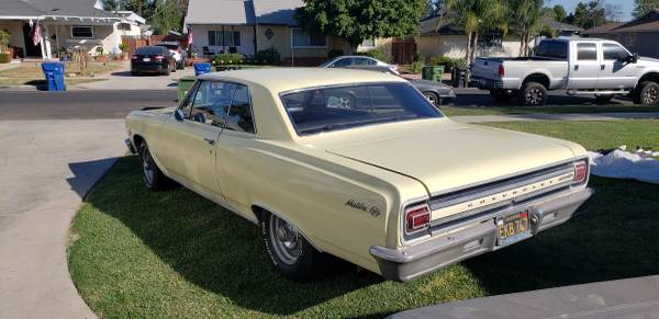 I do like the '65 and it would be a neat car to have, but I am doubting his claim of all original paint. The right quarter panel appears to have some "work" done to it and the whole right side looks like it was rubbed on the side of the garage door. Front bumper has been replaced too. Left fender is still creased from being bumped.