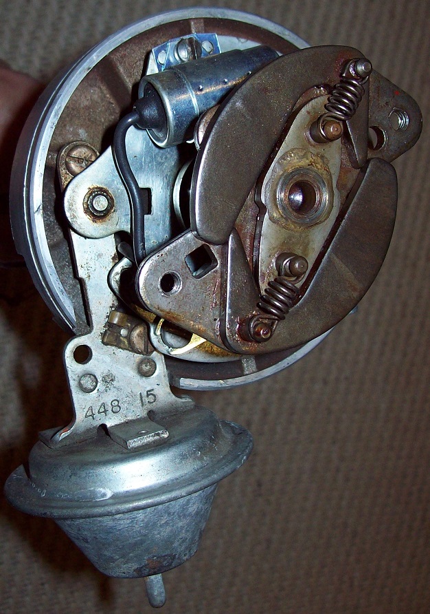 Original 448 15 Vacuum Advance, Original 524 CCW Main Shaft Plate and 1112148 3E17 lightly stamped by the factory.