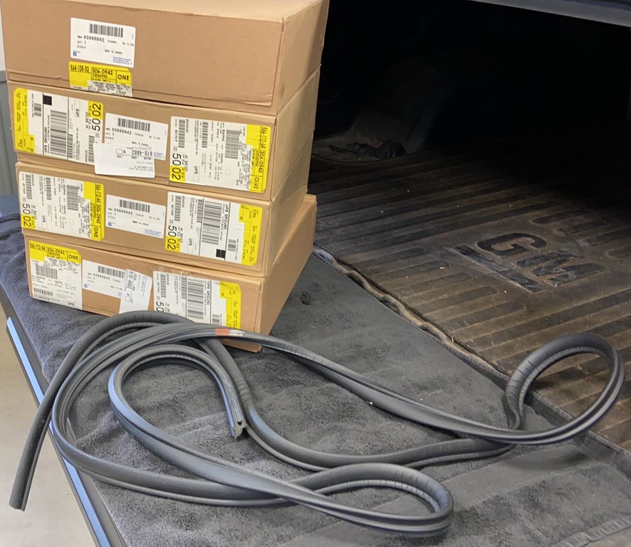NOS 3060942 "Made In Canada" Trunk Weatherstrip for 1967 to 1981 Camaro Z28 or Firebird Formula Trans Am, I took one out of the box and it measures 157", nice soft pliable rubber for that special car. $225 USD Each (Four Boxes In Stock) plus $18 Shipping. Paypal "Friends"