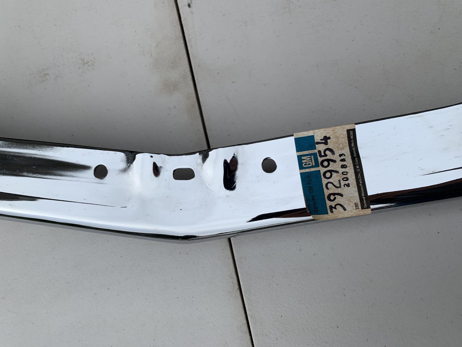 This is an original GM 3929954 NOS front bumper correct for 1968 Camaro, but also can be used on a 1967 as well. The 67 bumper p/n 38886690 has one hole on the bottom center for mounting the front license plate holder, the 68 bumper has 2 extra holes for mounting the center small bracket with the rubber bumper stopper. This has been in dry storage since 1982 & I removed it from its original brown paper, the chrome is in excellent condition worth of a concours car, no flaws at all.