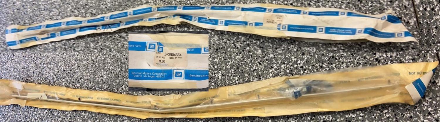 1967 Nova Chevy II 3904654 Hood Lip Molding, Photo shows the front and back of the GM NOS Package, it is for ONE Molding.