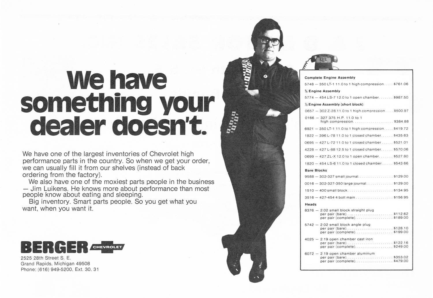 MCACN friend and Berger GM part number extraordinaire. He probably sold more over-the-counter high performance parts than anybody else and his photo was even used in magazine advertisements. RIP.
