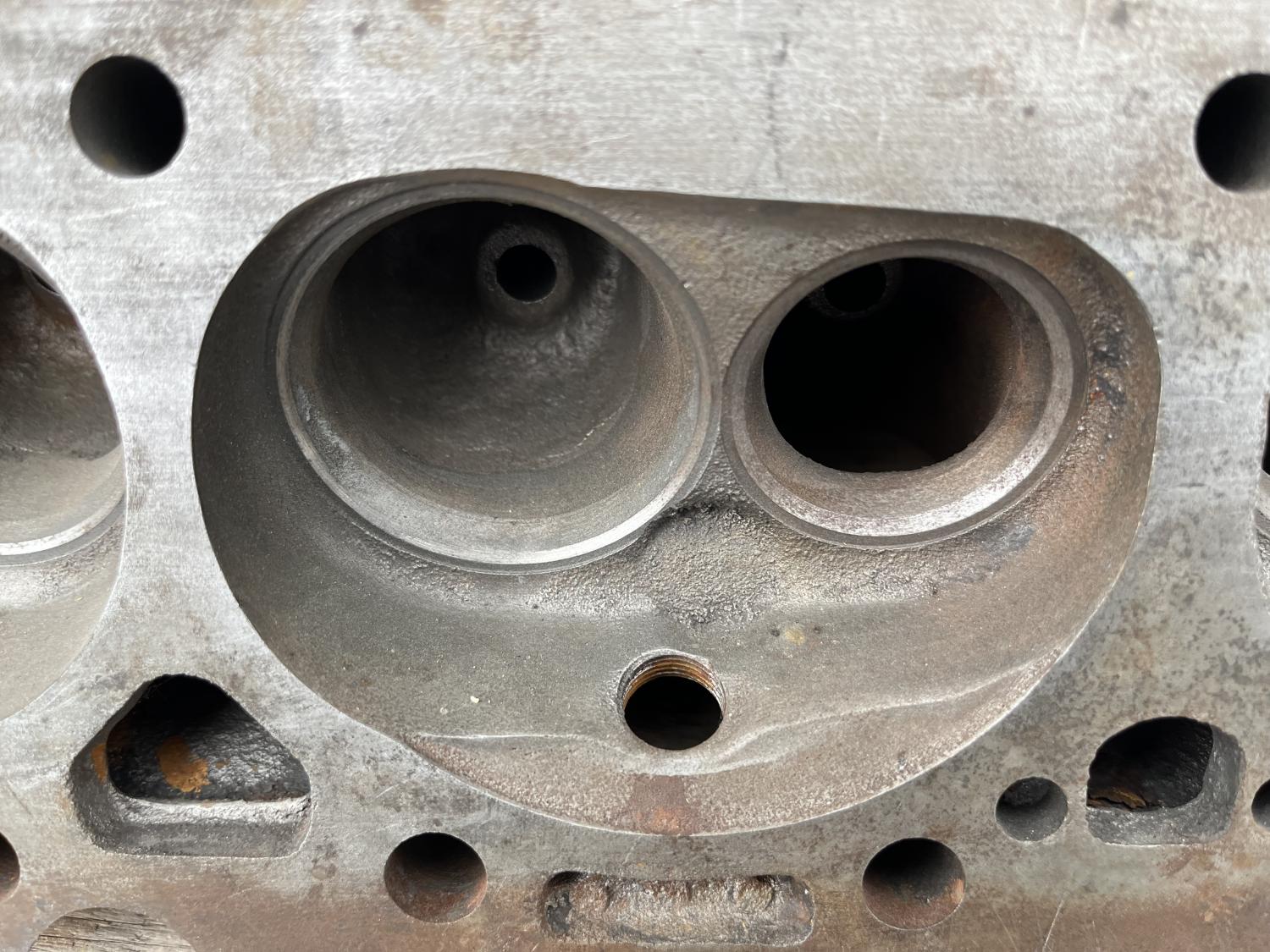 They are cores and I was told they were recently checked and magged. I've included a lot of detailed photos - they may have been slightly ported and or polished as shown. Two studs have stripped / corroded threads and the machine shop that disassembled, cleaned, and checked them recommended replacement with screw in studs. The previous owner abandoned a stock resto for an LS swap while the parts were at the rebuilder for the engine rebuild and presumably during tear down / cleaning.