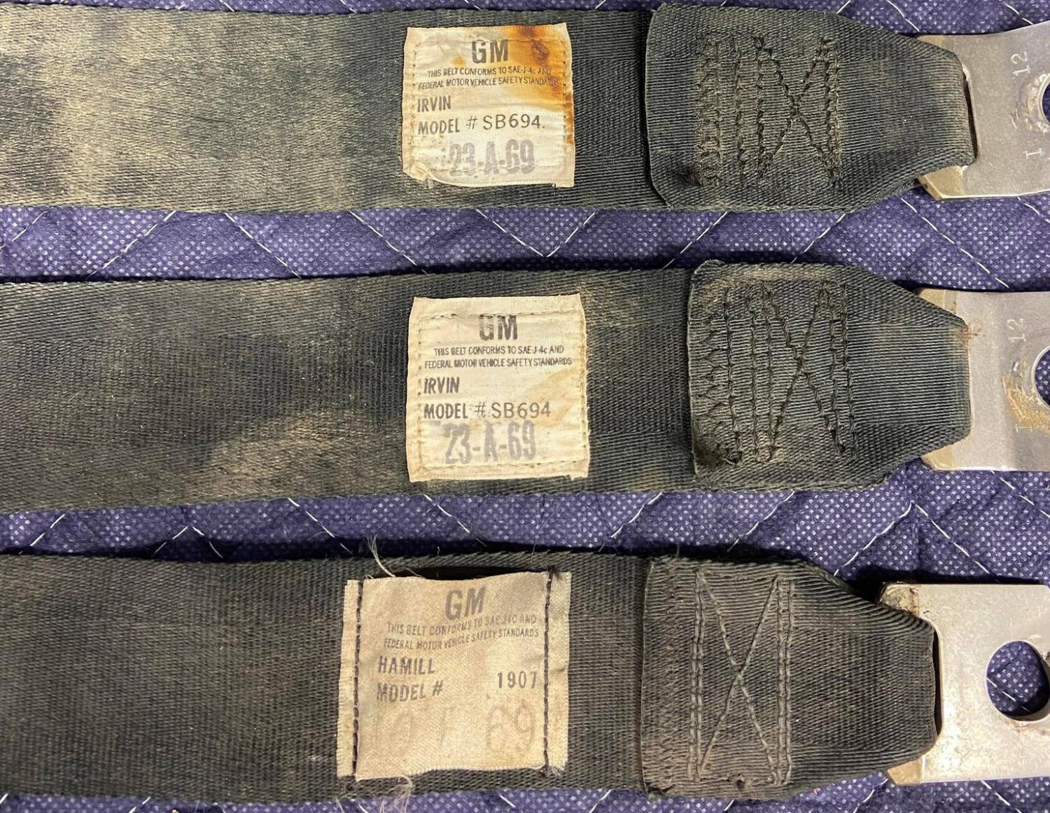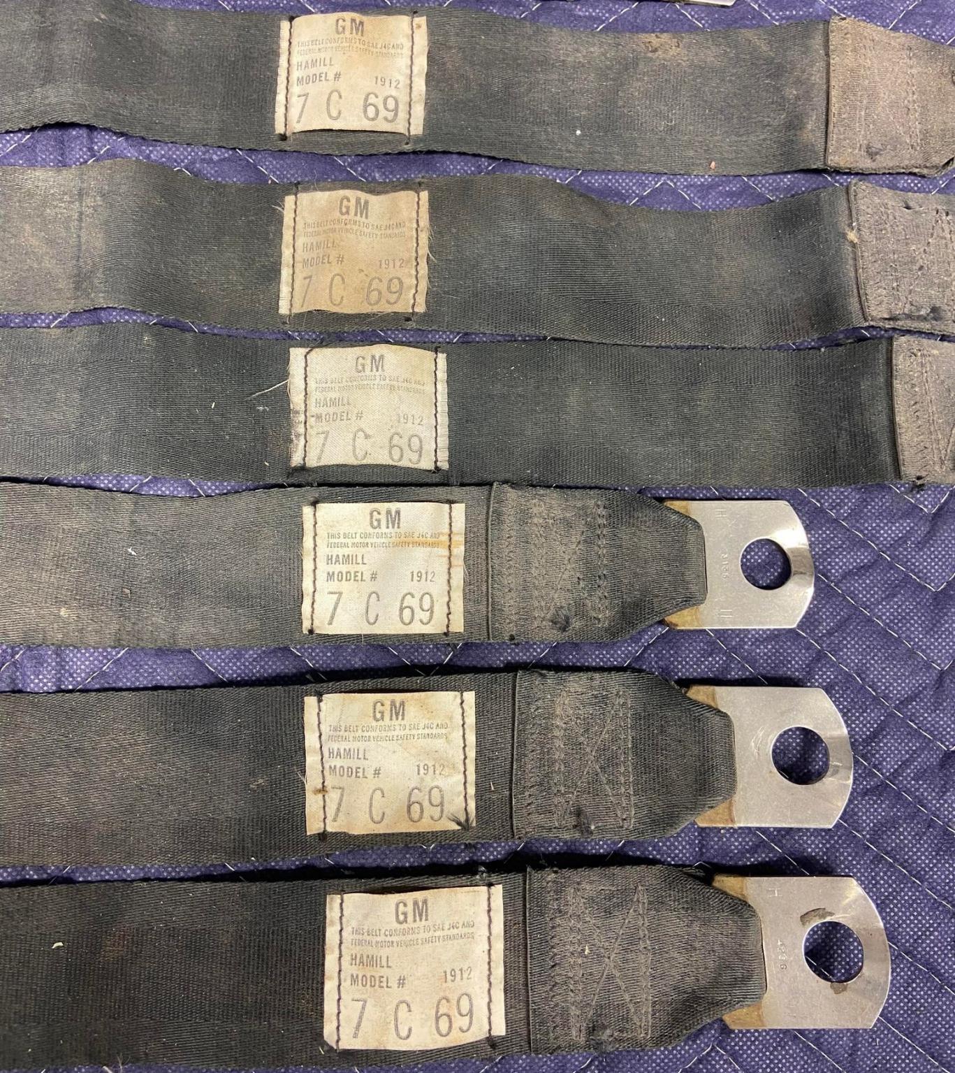 Take all or take none, Break up value is large but take all for $275 plus $25 Shipping. Includes Everything you see in the photos including 9 Retractors, 4 Deluxe Seat Belts, 4 Standard Seat Belts and 3 Male inserts. See Photos for Date Codes which are >>> 7th week of 69, 10th week of 69, 23rd week of 69 and 42nd week of 69. I believe many of these can be restored or cleaned up again. Paypal "Friends"