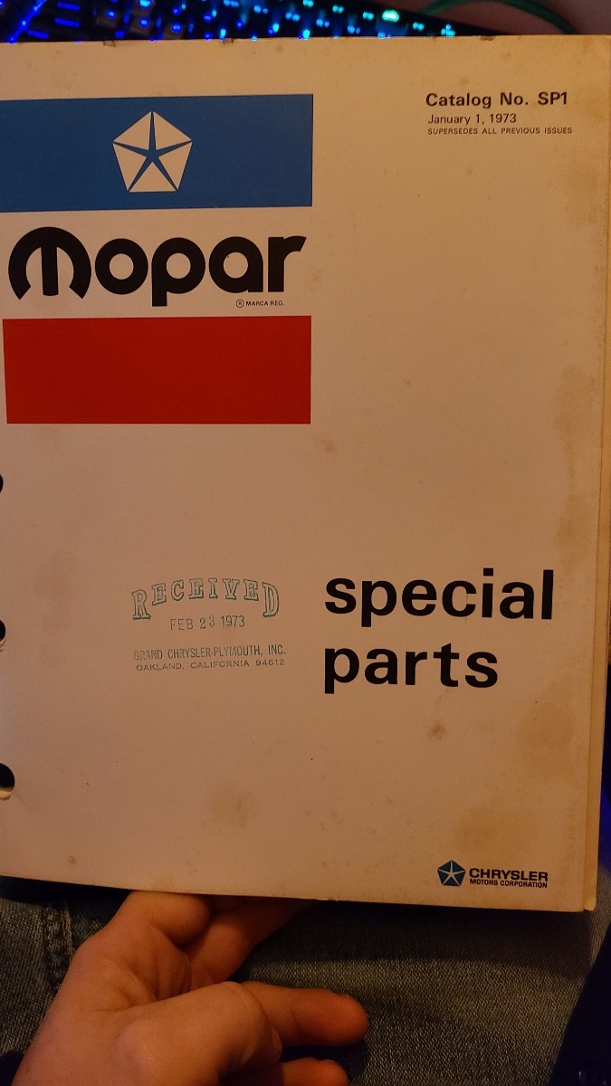 The carbs are Holley 6214 1150cfm Dominators. This pair was build on October 19 and October 31 1973. Sold through Direct Connection for the IR pro stock Hemi Program.