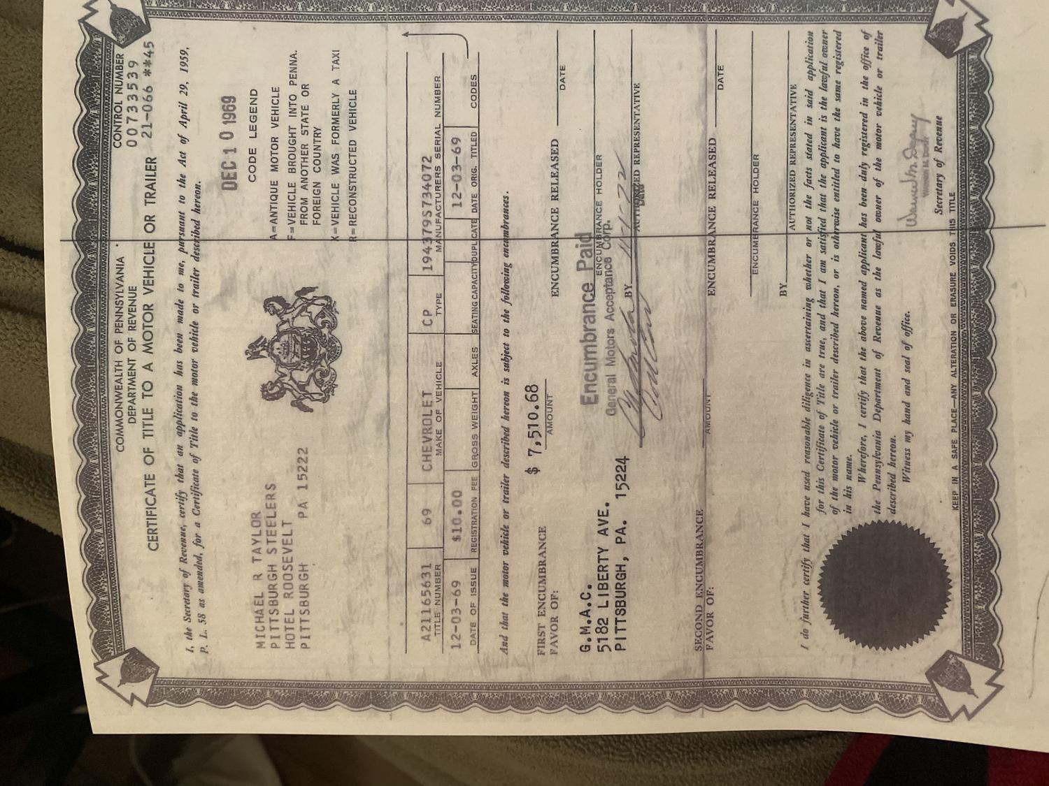 But I do have the original title from back when Big Mike Taylor paid off the car in 1972.