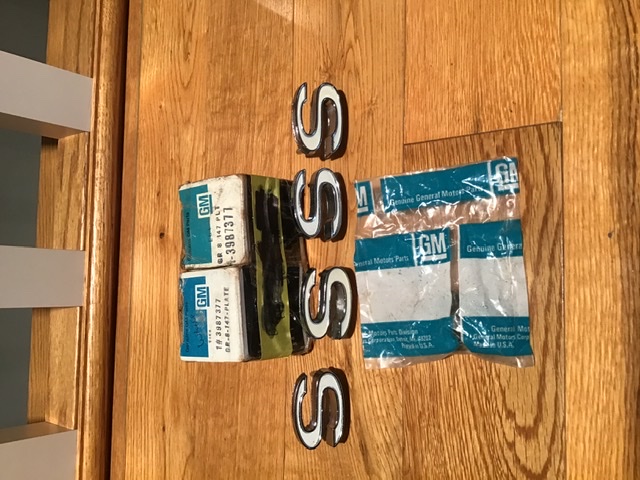 Nice set of 1969-72 SS Camaro emblems in the boxes. I only have one package of speed nuts. These are the harder to find white emblems. These boxes are dated 1986. $100.00 plus shipping. Lower 48 only. Thanks