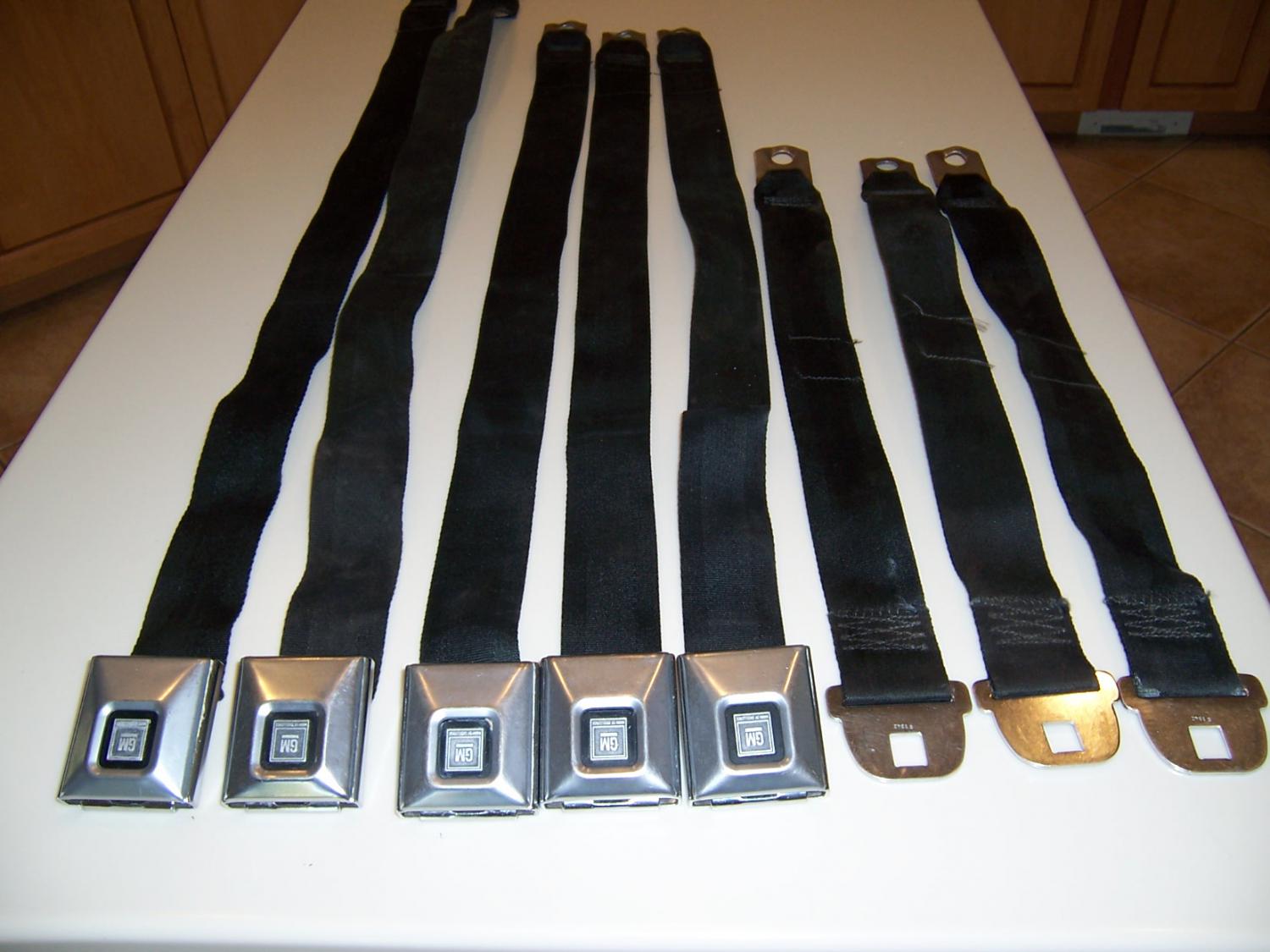 NO RESERVE!!! On eBay now for auction is a complete set of black Deluxe seat belts for a General Motors A-body coupe with bucket seats. They are dated for late in calendar year 1971, so undoubtedly originally came in a 1972 model car. If you aren’t concerned about the date codes, they could be used for the 1968 to 1971 models also. These would be correct for a Chevelle (including SS396 or SS454), Olds Cutlass or 442, Pontiac Tempest or GTO, Buick Skylark or Grand Sport. They may even be correct for a Monte Carlo or Grand Prix or other models, but do your homework before bidding. Everything you see in the pictures is included. The retractors for the outboard front seat lap belts work perfectly. There are belts for the two front seat occupants, including separate shoulder belts, as well as three lap belt sets for the rear seat passengers. One mounting bolt is missing from one of the roof-mounted shoulder belts, but the other three are present. Also included, but not pictured, are four mounting bolts. The belt material is very clean and pliable with no visible defects. The brushed metal female buckles are in excellent original condition. These have been kept in clean, dry storage in a non-smoking home in the 20+ years I have owned them. I think you would be hard pressed to find another set that is this complete, with matching date codes, and in such good original condition. Offered with a $9.99 minimum bid and NO RESERVE. No ‘Buy-It-Now’, the auction will run its duration. Thanks for looking, good luck and happy bidding!