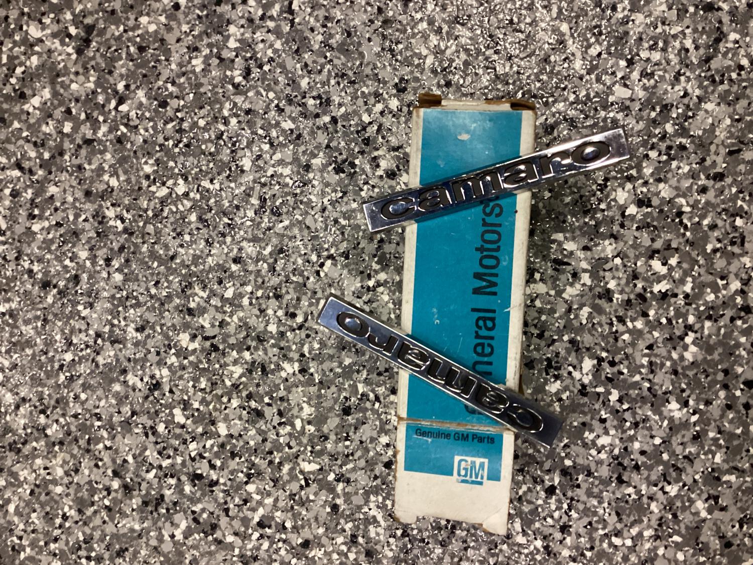 NOS 1967 Camaro Trunk and header emblems. Two are included. These are unused original emblems in great condition. Original box included. Part numbers are on back. $75.00 plus shipping for both.