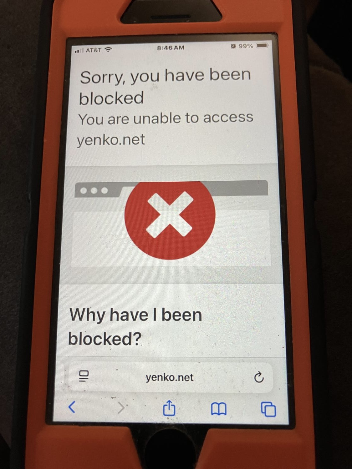I got that message a few times yesterday. I could then open a different page. Then go back to the one that was blocked later and it opened. Also I was reading a thread backwards and after about 5 or 6 pages I got that. It was like some algorithm thought something odd was occuring.