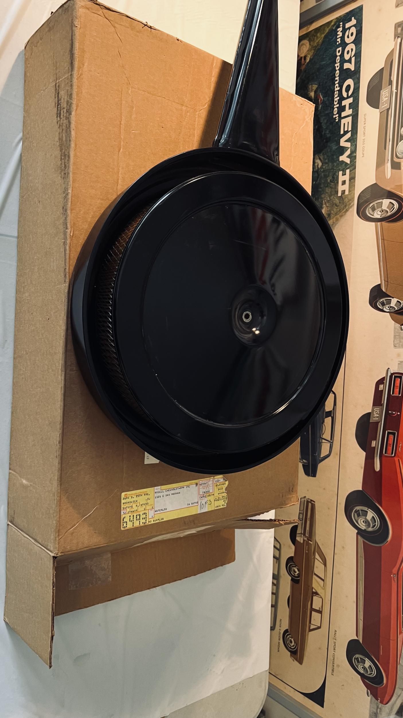 Nos 6485891 1970 (not flat bottom) Cowl induction air cleaner. The lid is scratched as it looks like someone set it on a car and screwed the wing nut down but otherwise, it is in mint condition. $1200+ shipping. I have a mint seal and a used ring I would throw in, as they do not come with that in the box.