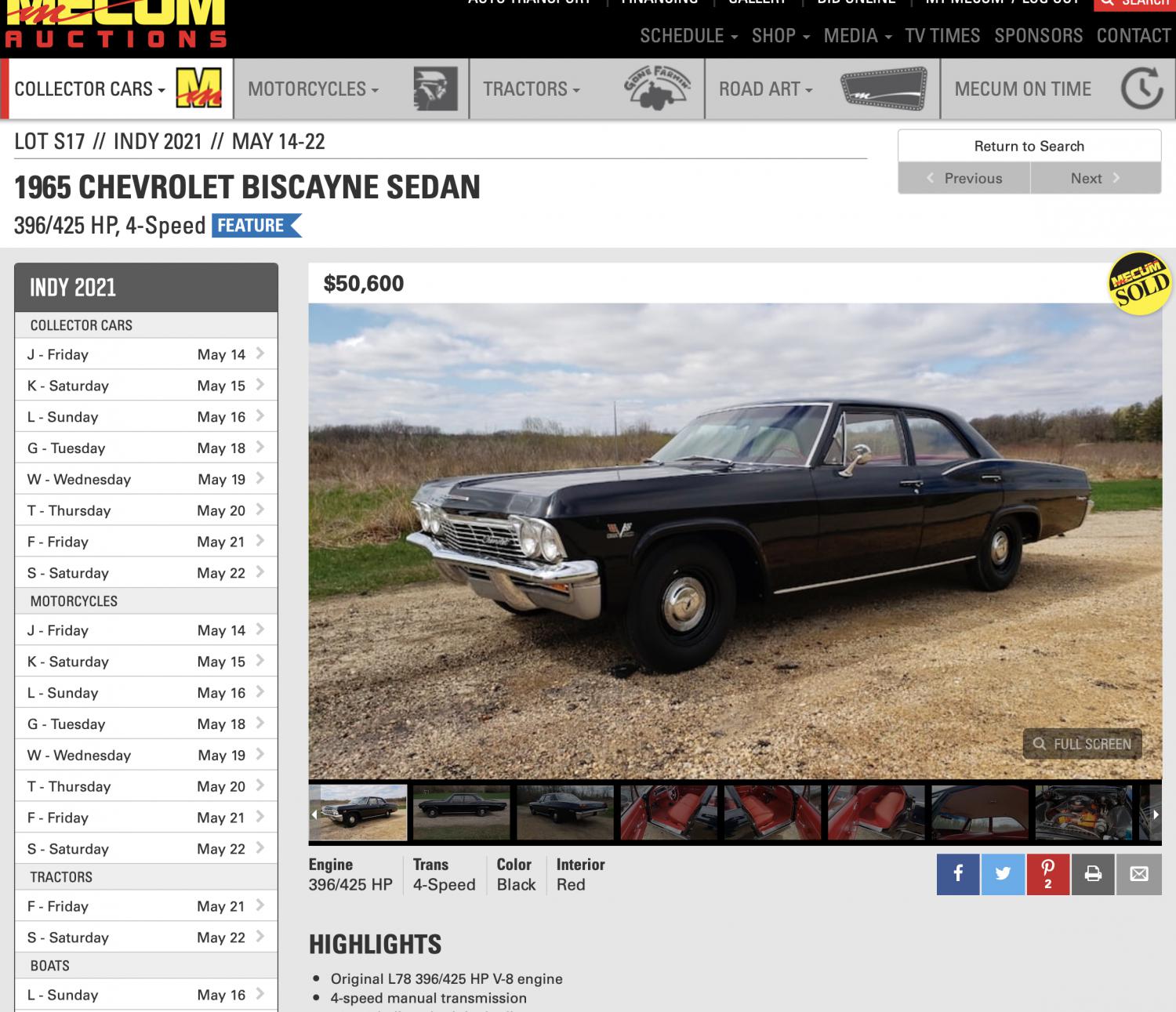 Someone posted here a few years back that the original owner had ordered this Biscayne to pull the L78 for their drag car being buying a Corvette or big Chevy was the only way to get one, then ended up changing plans etc. Car exists, was @ a Mecum sale in ‘21. ![]() ~ Pete .