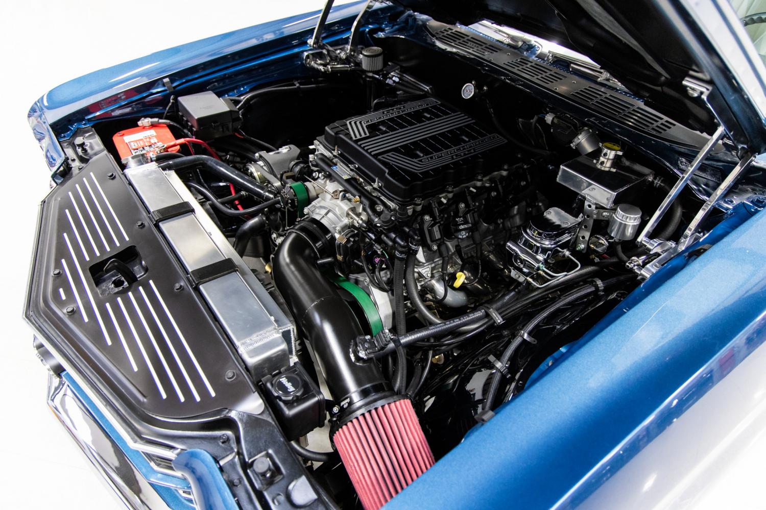The exterior of this Chevelle is simply gorgeous with its factory design, color combination, wheel selection and stance. From the information gathered it retains most of its original sheet metal. The body is straight and the cowl hood fits very nicely. The doors also close very nicely. The Fathom Blue paint is decorated with white racing stripes. The show quality paint was recently detailed to a brilliant finish. During the recent build the glass was replaced new which includes the Fuyao front windshield, door glass, rear quarter glass and rear windshield. Everything on the exterior has been restored or replaced new including the stainless glass trim, wiper arms, cowl trim, side mirrors, front grille with SS emblem, headlight buckets, Sylvania headlights, front bumper, door handles, rear bumper, tail light bezels and lenses. The side fenders were decorated with SS and LT4 Supercharged emblems. It was outfitted with 20” Forgeline VX3C Concave forged alloy wheels that have a Graphite center and brushed lip. The wheels are wrapped with new Firestone Firehawk Indy 500 tires that are 245-40-20 on the front and 285-30-20 on the rear.