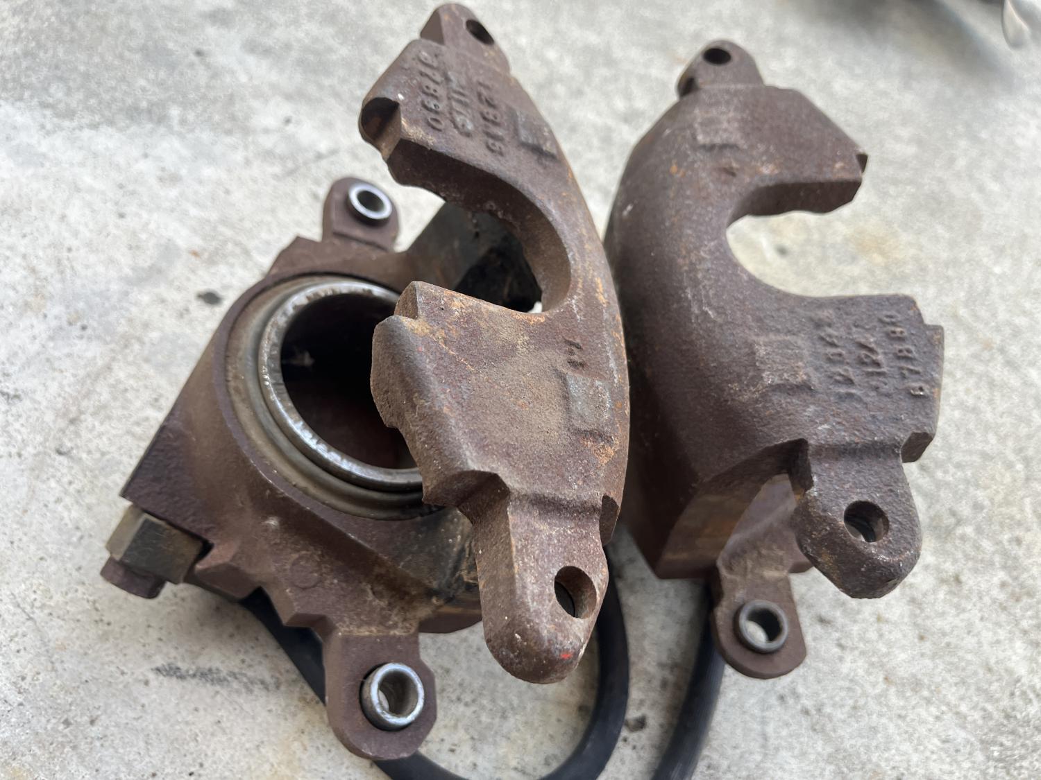 I have one pair of disc brake caliper cores here as shown below. 1970 Chevelle 5469700 & 5469701 calipers. You want the correct GM parts on your car. CORES - calipers will need to be rebuilt. Dates look like I-24 and I-17 A very original pair that are likely assembly line installed based on the crisp castings and close dates and similar patina, all IMHO. These are recent take offs of a recently running car undergoing a pro-tour type of restoration. Getting so much harder to find these. 150.00 PPG shipped to the 48. Thanks sYc Friends, Anthony |