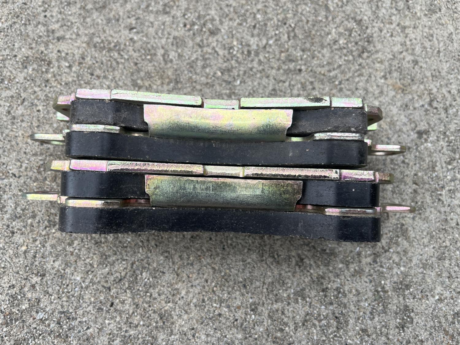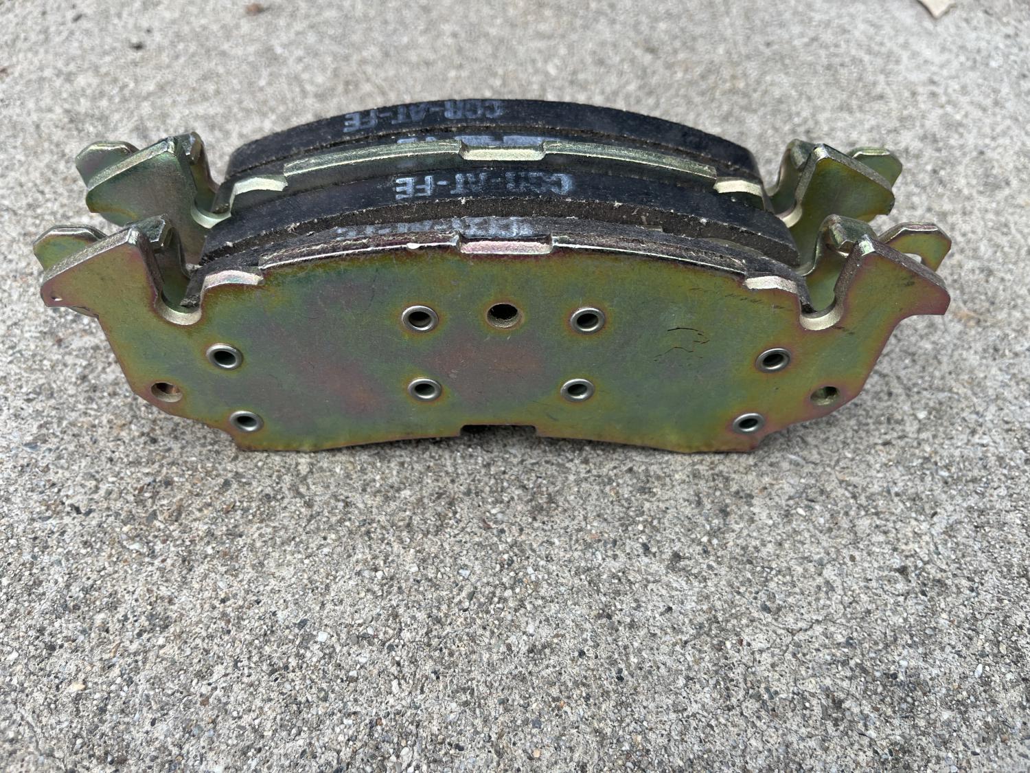 I have the below pictured set of new old stock after market brake pads that look similar to the GM originals, i.e. organic / semi metallic pads and gold iridite backing plate with no shims and no wear indicators, riveted. The "next best thing" appearance-wise anyway, to NOS Delco IMHO. Better than the currently available black backed and glued / bonded pads. See photos please. These pads also fit nearly every early GM single piston caliper of this era - lots of applications of course. This is a set of four pads as shown, enough for two calipers / one car. Also see my other ad for the original rebuilt 69 Camaro only calipers - 5463633 633 - 68 - 74 Nova too. I may have some cores listed / available too. Chevelle too. Thanks sYc, Anthony |