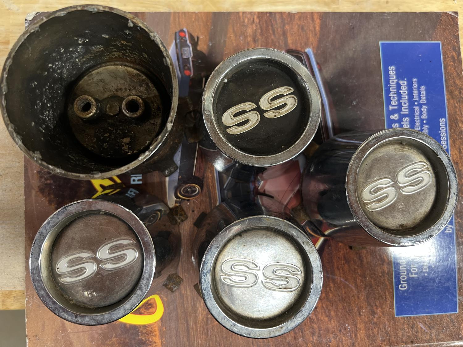 Set of 5 SS deep recess wheel caps with retainers. Driver quality, probably could be cleaned up a bit. Price plus cost of the ride.